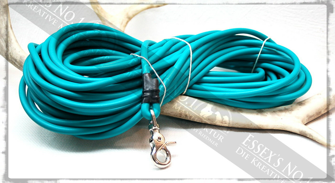 Schleppleine aus runder Biothane in 8 mm Durchmesser mit Scherenkarabiner ohne Handschlaufe.