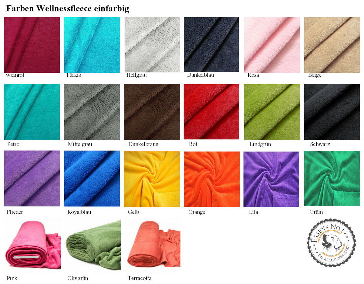 Die Farben und Größen sind frei wählbar. Bei Größen- und Farbwünschen oder Wellnessfleece mit Muster (z. Bsp. Sterne), die nicht in der Auflistung zu finden sind, bitte ich, mich einfach zu kontaktieren. Wie immer gilt, wir erfüllen jeden Wunsch!
