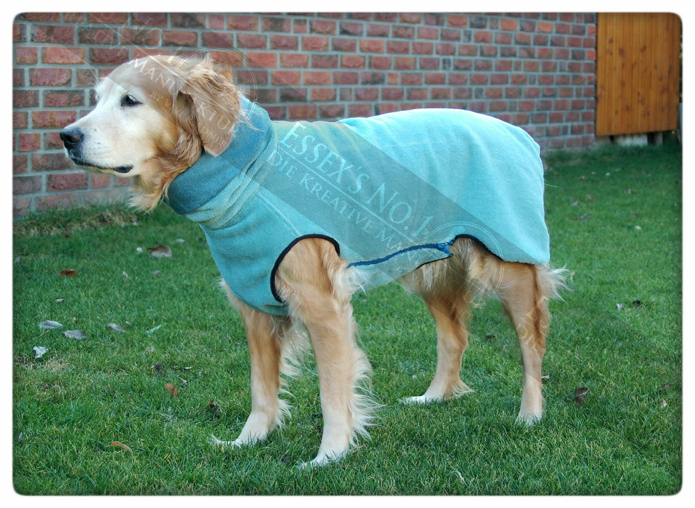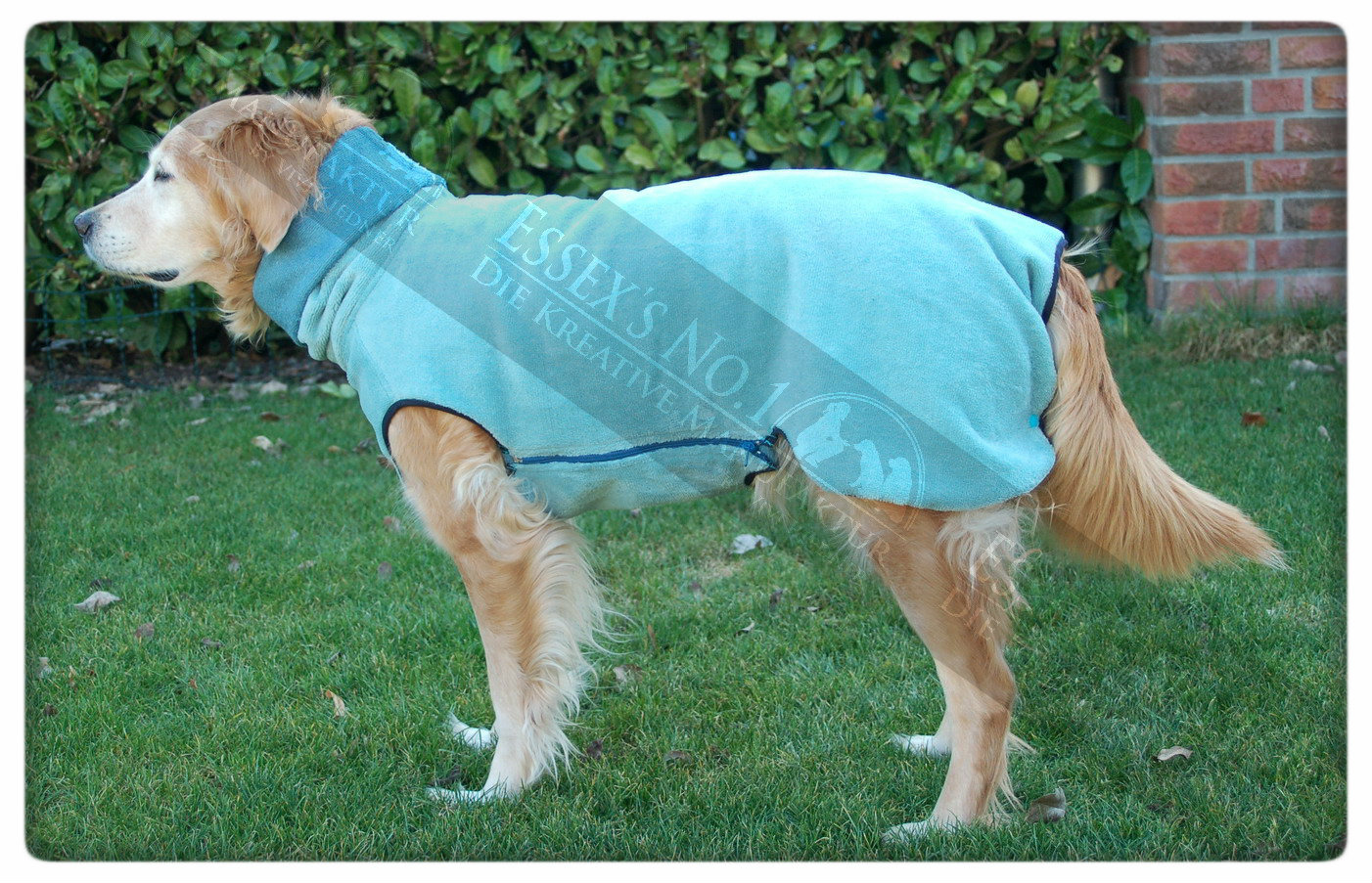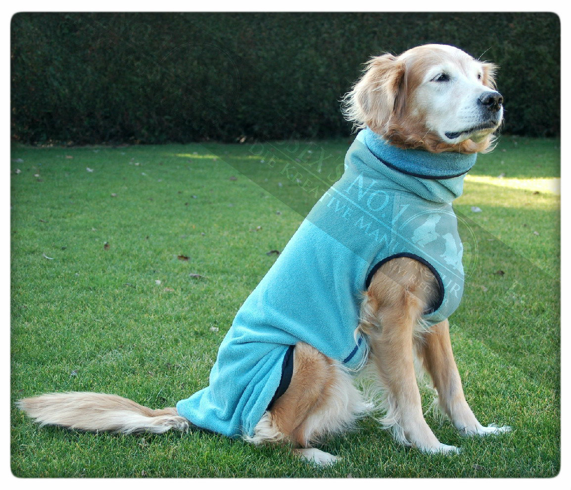 Der Mantel ist ein reiner Bademantel mit extra langem Kragen zum schnellen Trocknen deines Hundes im Haus. So bleibt auch dein Heim sauber und trocken.