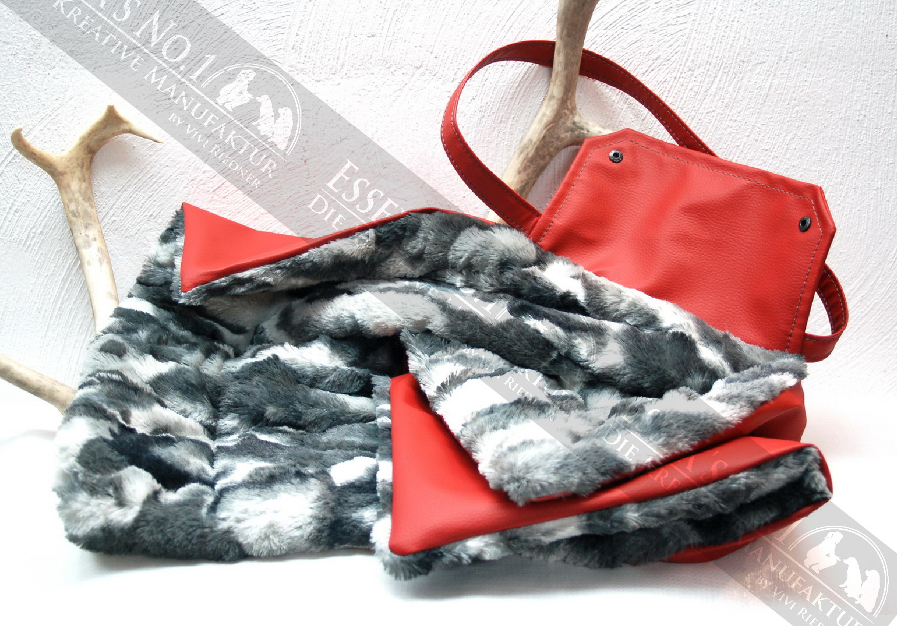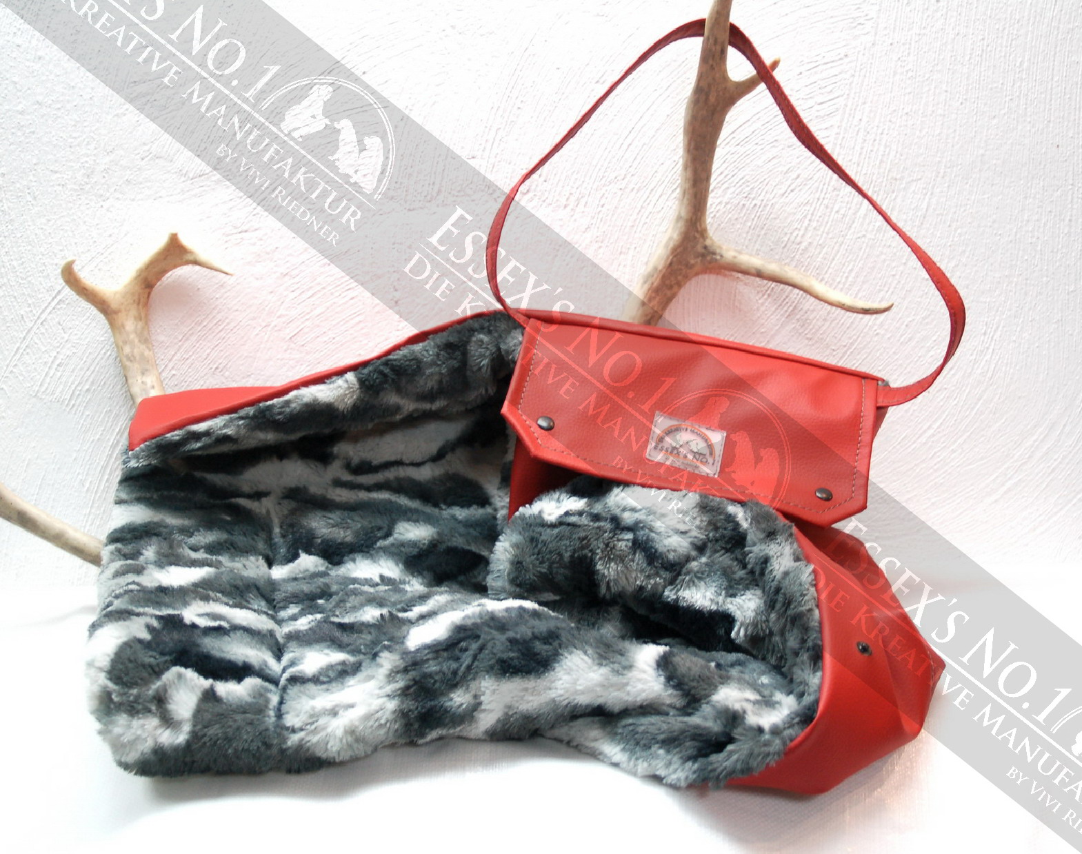 Unsere edle kuschelweiche OnTour-Decke aus hochwertigem Webpelz und sehr weichem Kunstleder wird in aufwendiger und liebevoller Handarbeit genäht.