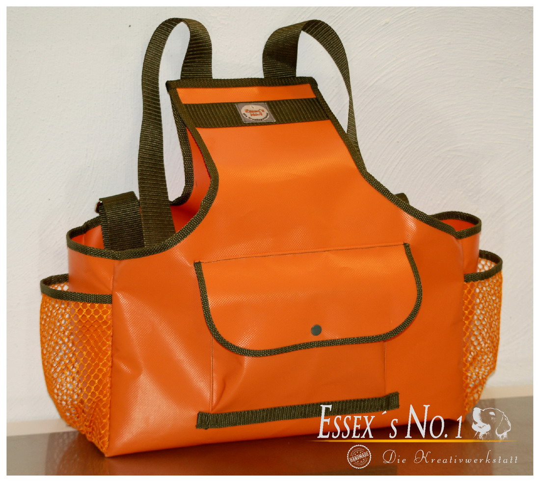Die Schultergurte sind stufenlos verstellbar. Die Farbe der LKW-Plane sowie die der Einfassung kannst Du frei wählen. Es gibt verschiedene Größen zur Auswahl.