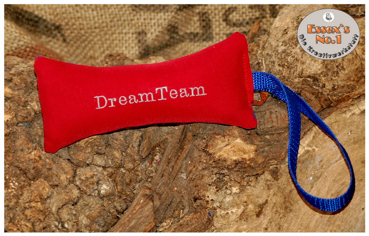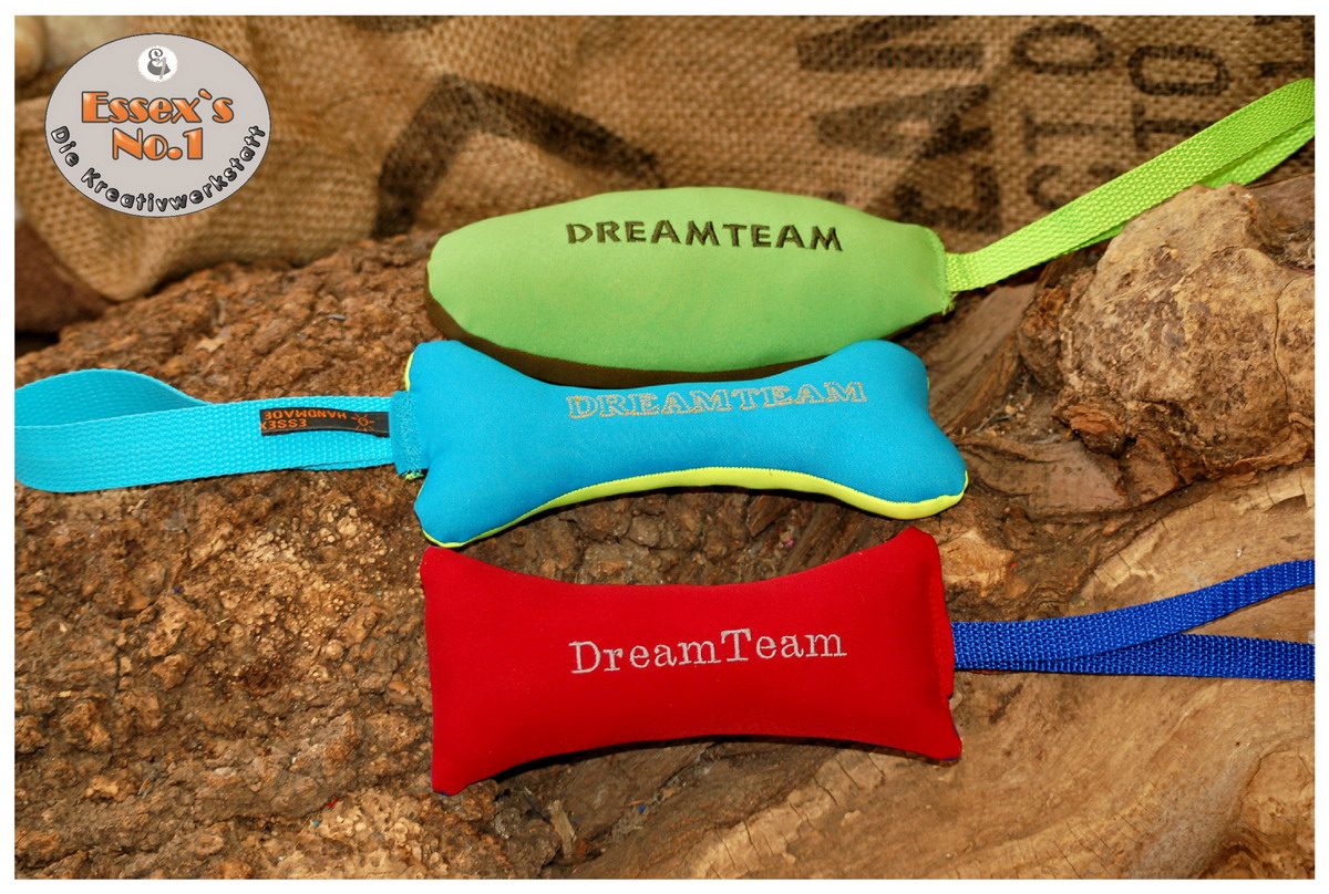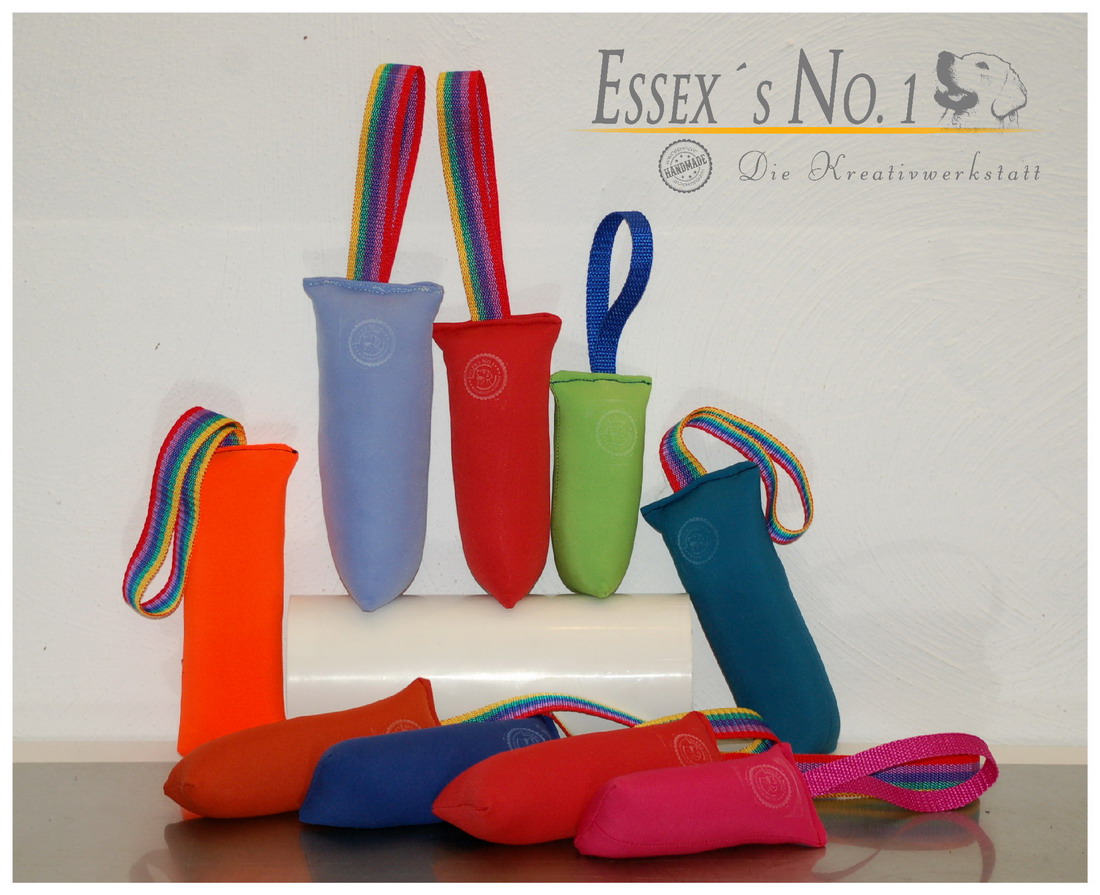 Das Apportel kann einfarbig oder in verschiedenen Farbkombinationen angefertigt werden. Du kannst zwischen Wurfband mit oder ohne Handschlaufe oder Wurfkordel wählen. Es gibt das Apportel in drei Größen und in verschiedenen Formen, teile mir einfach Deine Wünsche mit.