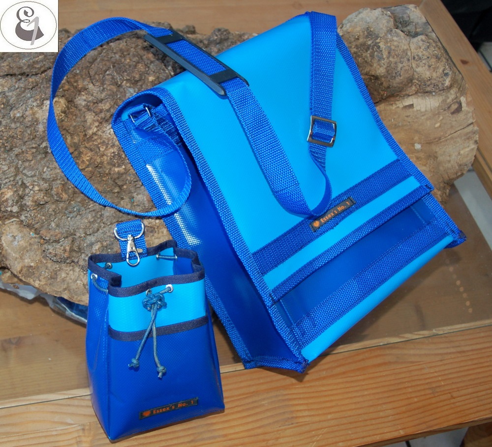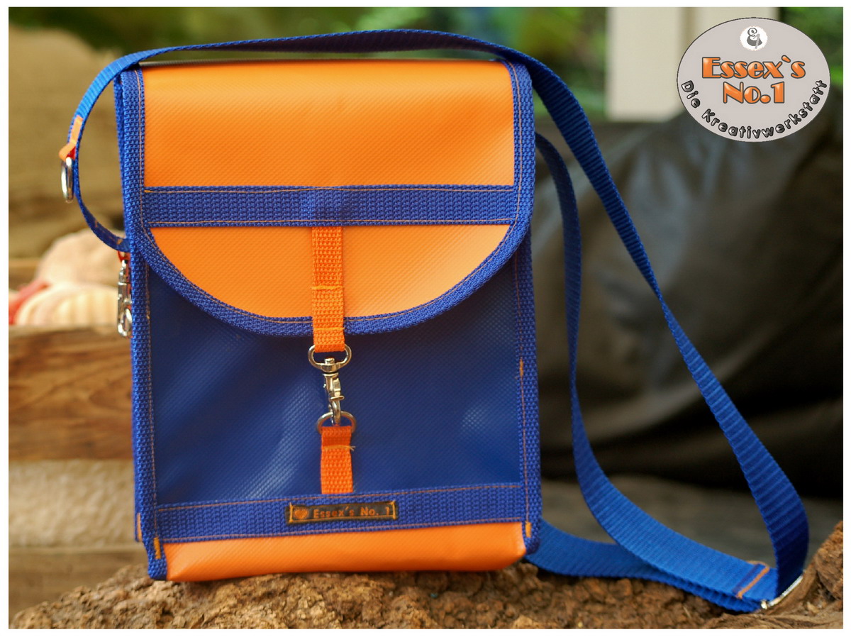Kleine ein- oder mehrfarbige Tasche aus LKW-Plane mit Einschubtasche, hergestellt in liebvoller Handarbeit.